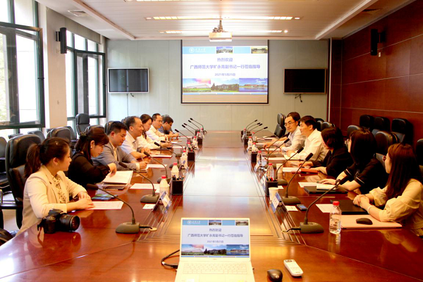 巩金龙对广西师范大学一行的到来表示欢迎,希望两校加强交流、互学互鉴,将深入学习贯彻习近平总书记关于高等教育的重要指示转化为工作实践,沿着“三全育人”“五育并举”人才培养综合改革的方向持续探索,致力于培育德智体美劳全面发展的社会主义建设者和接班人。