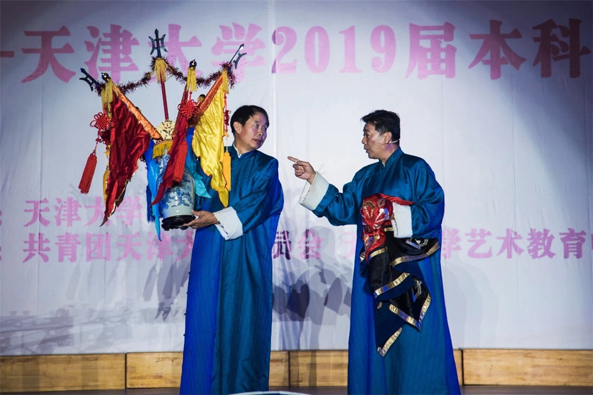 第一篇章“追踪·七星灯火”中,北洋合唱团带来的《天津大学校歌》唤起在座毕业生的天大情。随后,由天津大学艺术教育中心郝音老师带来的歌曲《春天的芭蕾》,以花腔女高音将现场气氛点燃。国际教育学院留学生带来节目《廿四节令鼓》气势震人,响彻云霄,展现了青年学子精神饱满、朝气蓬勃的风采。天津大学原创歌曲《海棠花开》以唯美浪漫的舞台与清澈的歌声相融,共同织就一片海棠记忆。