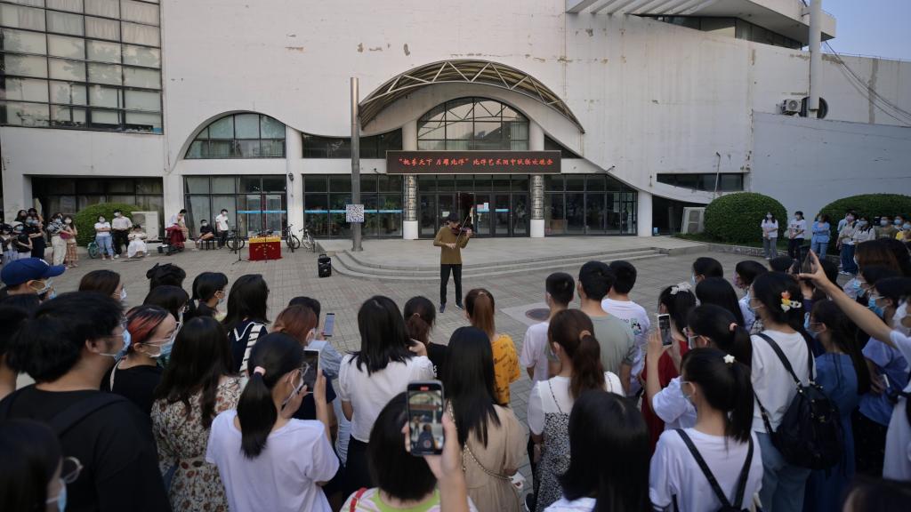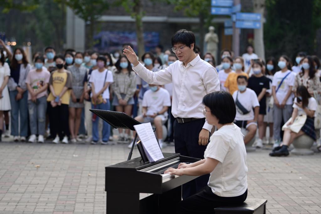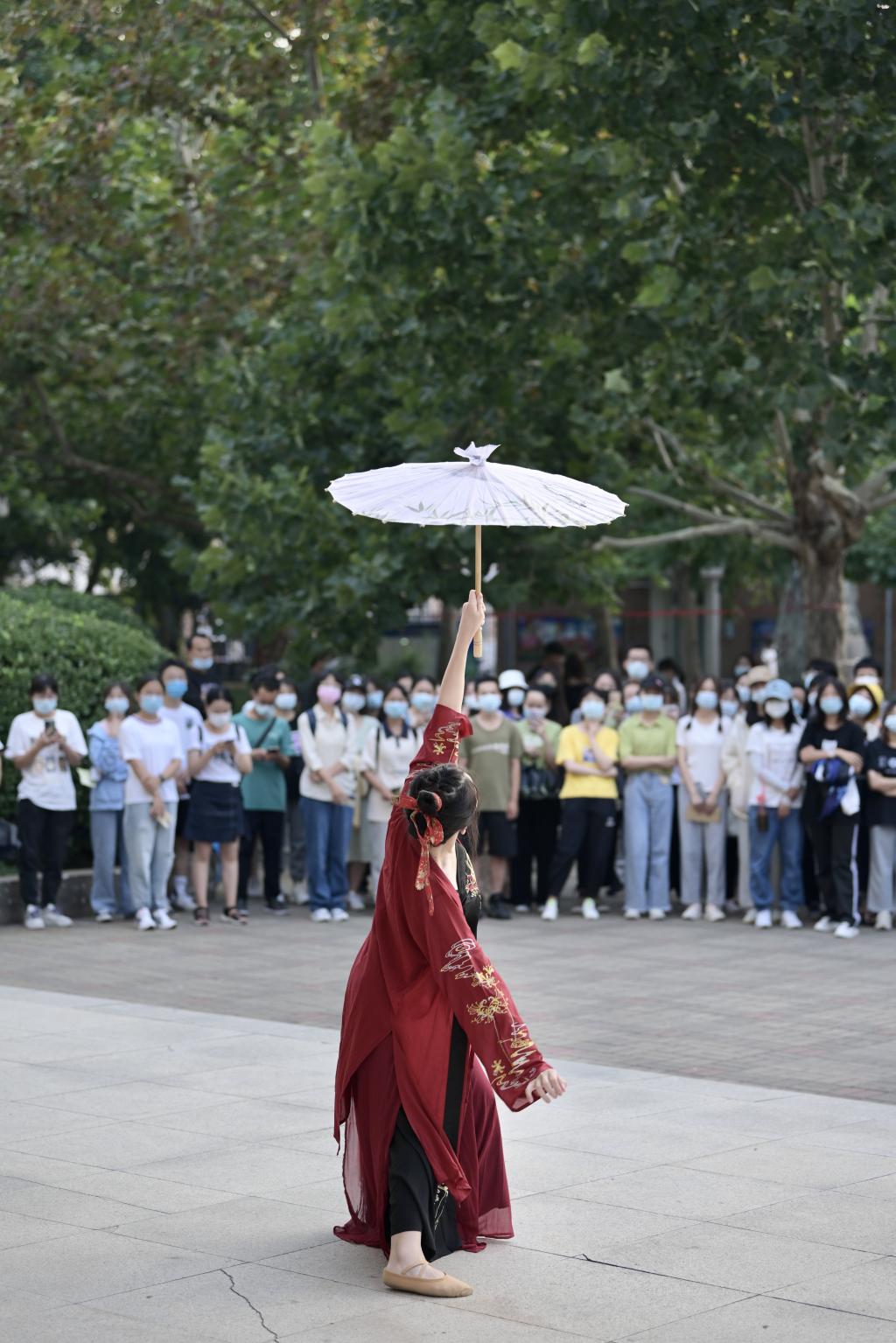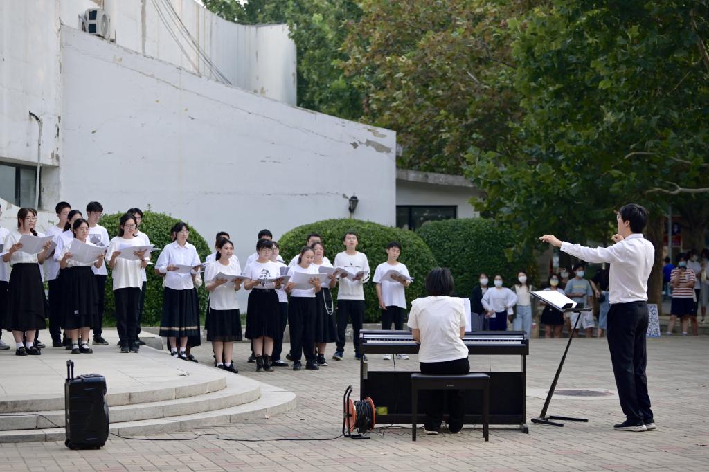 本站讯:9月10日傍晚,卫津路校区大学生活动中心门前,北洋艺术团师生代表举办了2022年中秋联欢晚会。无需门票与预约,同学们的精彩演绎吸引了校园里众多师生驻足观赏。