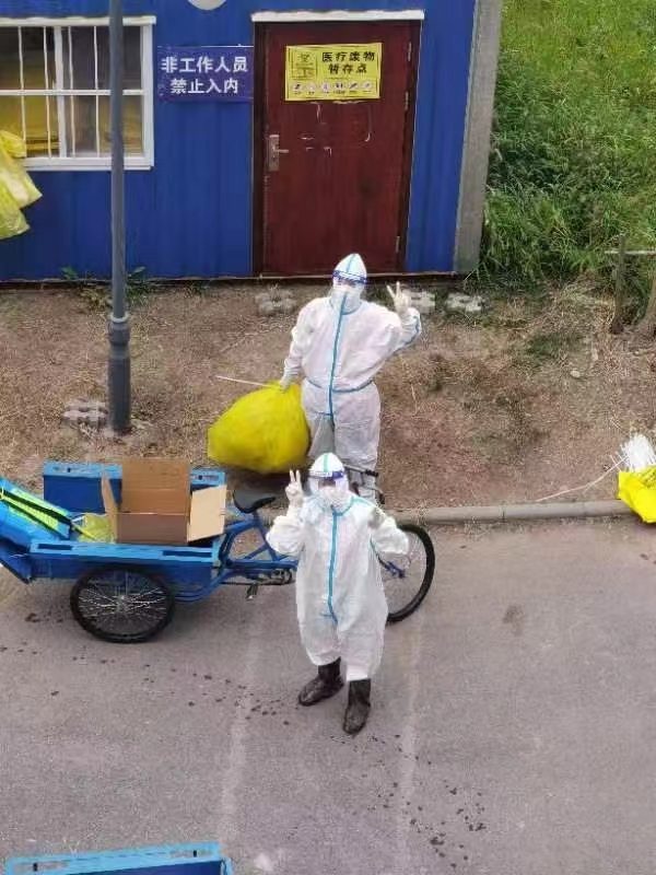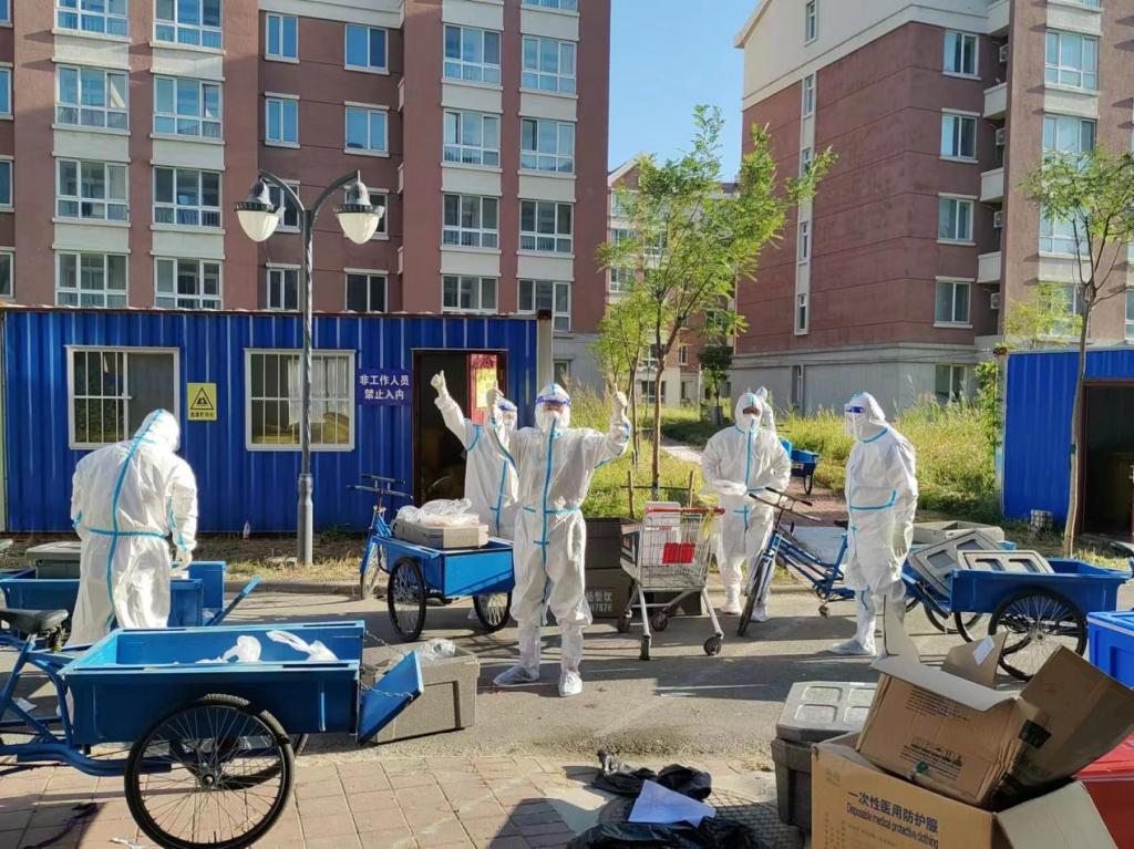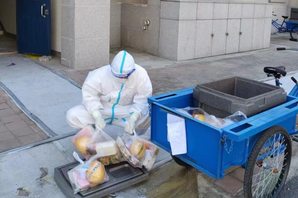 “宁河区区委区政府的领导干部与工作人员也是枕戈待旦,全心投入,成立后勤保障、医疗卫生、环卫维修等十个工作组,还有300多名同志进入红区,为大家的生活提供保障。”学工部邓有朋老师讲到,“送到大家手里的每件物品,背后都要经过统一采购、仓库调货,取货对接,检查消杀等诸多环节。交接到楼门长手中后,要穿好防护服,一层一层送到门口,下楼再完成脱防护服、消杀处理等一系列的流程,这一来一回之间,往往衣服全部湿透,也有工作人员曾因脱水倒下,却依旧义无反顾。”