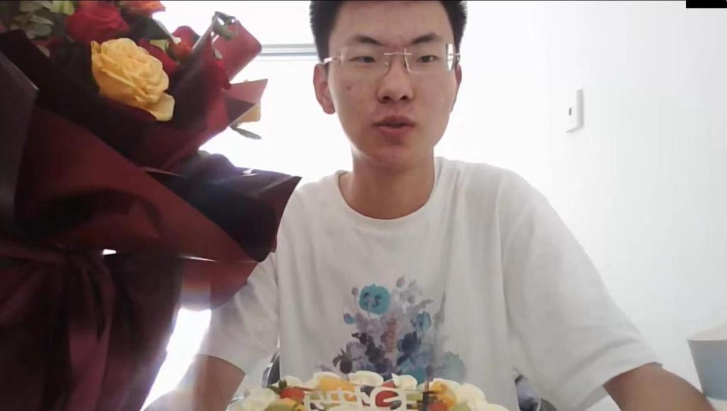 跟刘奕江同一天过生日的2022级社会科学试验班新生石浩冉也在会议室里,面前摆着同款的蛋糕与鲜花。作为大一萌新,石浩冉告诉屏幕前的妈妈,第一次离开家到陌生的城市来上学,本来就充满忐忑,突然发生疫情更惶恐了,没想到在隔离点感受到了家的温暖,物资一点都不缺,娱乐有云上健身操,还有云上歌会。“今天过生日本来没什么期待,没想到这么隆重,我很快乐,谢谢大家给予我的祝福,感谢大家给予的帮助。我一定要好好学习,好好上网课,做一个合格的天大学生。” 石浩冉妈妈有些小激动,她对孩子说:“记住这个特殊的生日,记住来自大家庭的温暖,希望你心里有梦,眼里有光,活成自己想成为的样子。”