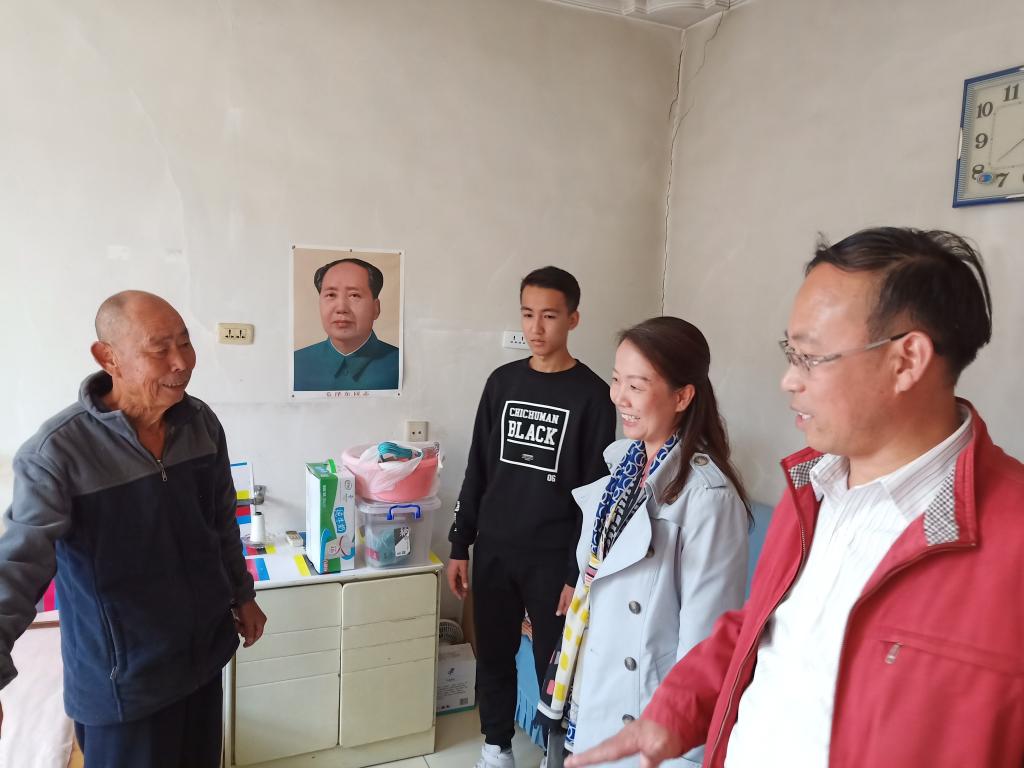 活动结束后,在付家村工作人员的带领下,老师和同学们带着节日的慰问品,看望了付家村的贫困户老人和老党员家庭,为他们带去师生尊老爱老敬老的心意,并送上节日的祝福,祝愿乡亲们家庭幸福,身体健康,早日实现小康。