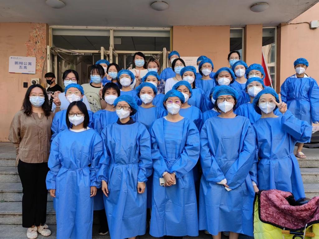 “饭送到宿舍楼下,志愿者们可以来取了!”不到十分钟,我的午餐已经被送到了8层。下午,我接到层长的通知核酸,抬头一看,周围竟也是熟悉的面孔,平常住在一个宿舍楼的伙伴们化身“小蓝”,也在守卫着我们。