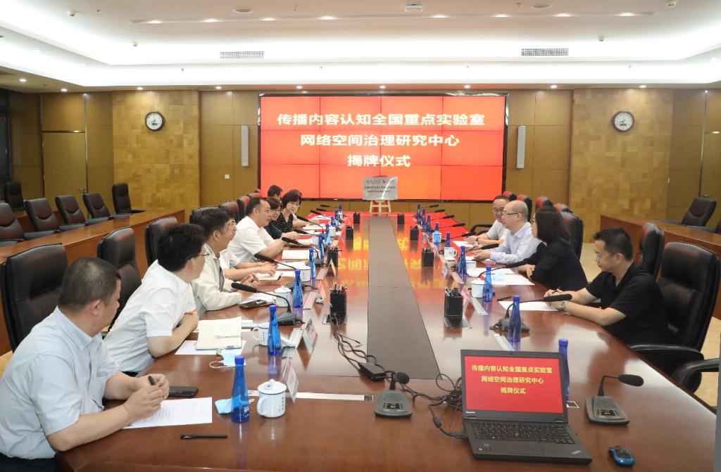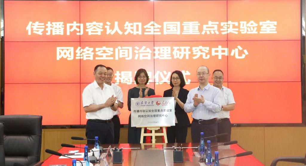 本站迅(图片唐蒙)2022年8月27日,传播内容认知全国重点实验室—网络空间治理研究中心揭牌仪式在天津大学新校区行政楼举行。校党委书记杨贤金与人民网党委书记、董事长、总裁、传播内容认知全国重点实验室主任叶蓁蓁共同为研究中心揭牌。人民日报天津分社社长乔杨、人民网天津公司总经理王浩、人民网工会副主席王晓峰,校党委副书记雷鸣、新媒体与传播学院院长陆小华及相关职能部门、学院(部)负责人、教师代表出席了揭牌仪式。