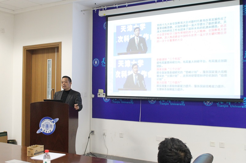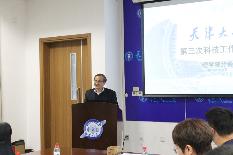 本站讯(通讯员 商闯)11月27日,天津大学理学院召开了2018年科技工作会议,天津大学副校长胡文平、科研院副院长魏建宏出席了会议,理学院和分子+研究院部分领导、科研教师代表参加了本次会议。会议由理学院党委书记刘昌龙主持。