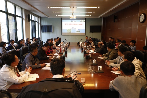 钟登华首先指出,全国教育大会是党中央在中国特色社会主义进入新时代召开的第一次全国性教育会议。习近平总书记发表的重要讲话,站在新时代党和国家事业发展全局的高度,深刻总结了党的十八大以来我国教育事业改革发展取得的显著成就,深入分析了教育工作面临的新形势新任务,科学回答了关系我国教育现代化的重大问题,对当前和今后一个时期教育工作作出了重大部署,为加快推进教育现代化、建设教育强国、办好人民满意的教育指明了前进方向、提供了根本遵循。他从深刻理解把握全国教育大会的重大意义,深刻理解把握教育的重要战略地位,深刻理解把握党的十八大以来教育的历史成就,深刻理解把握习近平总书记关于教育的重要论述,深刻理解把握新时代教育改革发展的重点任务,深刻理解把握学习贯彻大会精神的要求等六个方面对大会精神进行了详细解读。