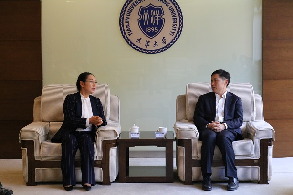 张荣华对荣程集团的发展情况进行了介绍,集团共设有钢铁、科技金融、文化、健康四大板块,她重点介绍了集团的产业优势和布局,希望依托天津大学的学科资源优势,在联合智库、新农村建设、生物基因、大数据、非遗文化等方面展开全方位的深入合作,双方共同发挥各自优势,做到产学研深度融合。
