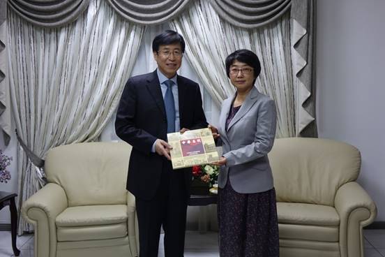 会谈结束后,我校代表团拜访了中国驻文莱大使馆,杨健大使向代表团简要介绍了文莱政治、经济、教育等情况,并详细介绍了中文两国友好往来情况,指出大使馆非常希望推动国内高校与文莱高校之间的合作。李家俊介绍了我校与文莱大学的合作情况,并重点介绍了天大作为中国-东盟工科大学联盟秘书处的近期工作成果,表示天津大学将进一步推进共建“一带一路”教育行动,拓展与文莱高校之间的合作。