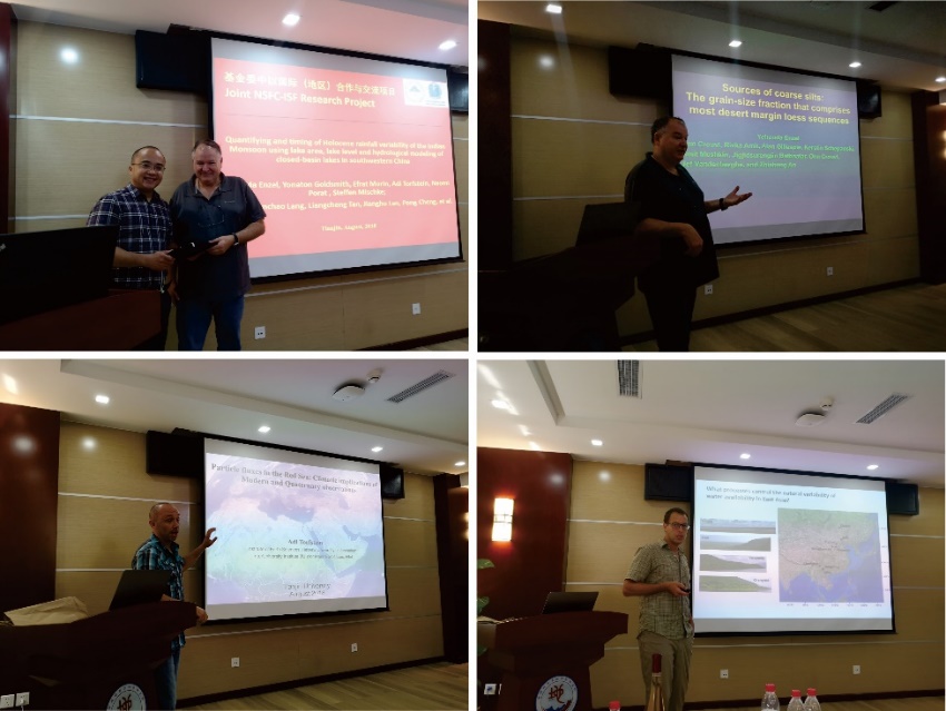 本次研讨会首先以外方代表做的与项目相关的学术报告为主题,分别为:以色列希伯来大学Yehouda Enzel教授的“Sources for the characteristic grain sizes in desert margin loess”、Adi Torfstein副教授的“Particle fluxes in the Red Sea: climatic implications of modern and Quaternary observations”、Yonatan Goldsmith博士的“The oscillating fringe and paleo-intensity of the East Asian monsoon”。报告结束后,徐海教授就本项目执行以来取得的进展向全体项目成员做详细报告,并提出进一步的工作计划。随后,全体项目成员及与会师生就项目涉及的相关科学问题展开热烈讨论。本次研讨会取得了圆满成功。