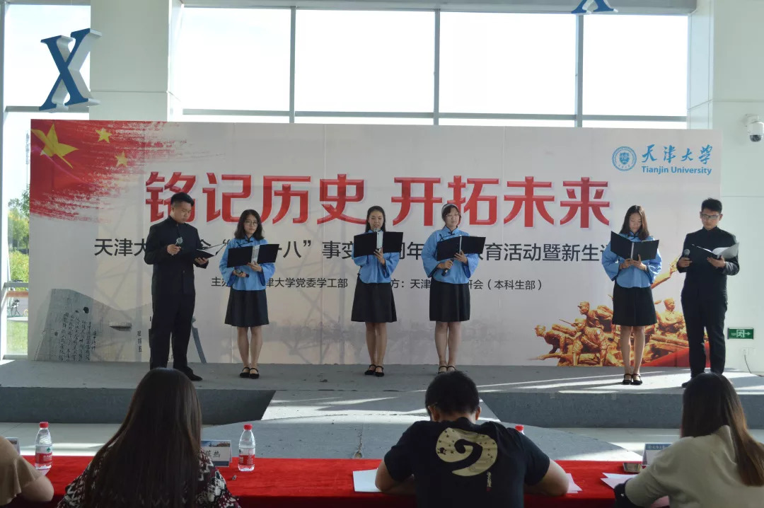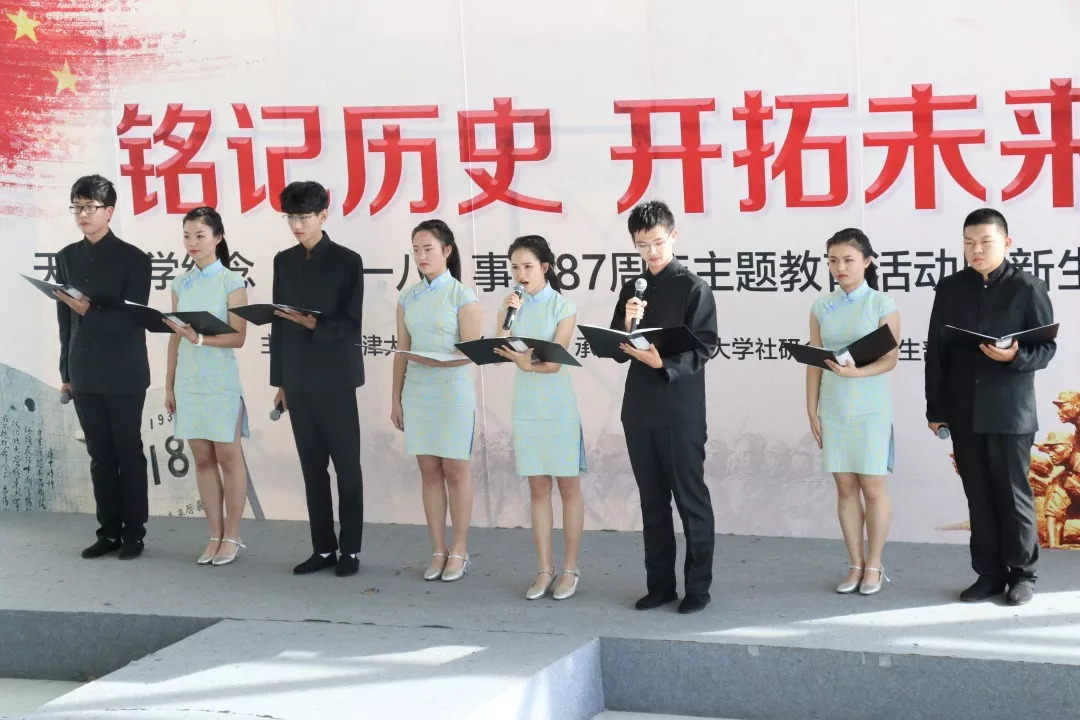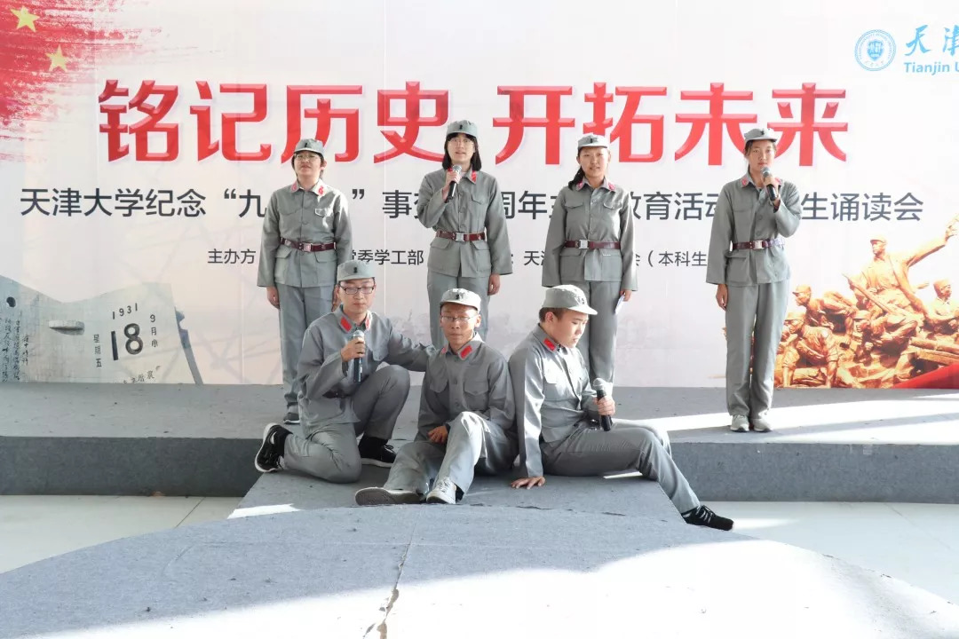 “87年前的今天,侵略者敲开了我国的国门,无数英烈为此抛头颅洒热血,历史不应该被忘记,他们也不应该被忘记,通过这次的诵读活动,让我对这段历史有了更深的了解,同学们营造的极具代入感的氛围,激发了我的爱国热情,勿忘历史,牢记使命,我们青年人该有青年人的担当”天津大学本科生张营政参加完活动这样说。当日的活动中,来自全校17个学院的学生代表以诵读会的形式追忆“九一八”和中国抗战的历史,他们有的诵读经典名篇,有的演绎原创诗歌,他们以各具特色的形式再现了中国抗战历史的苦难与辉煌、悲壮与荣耀,展现了当代青年学生勿忘国耻,爱我中华,奋发有为的精神面貌。