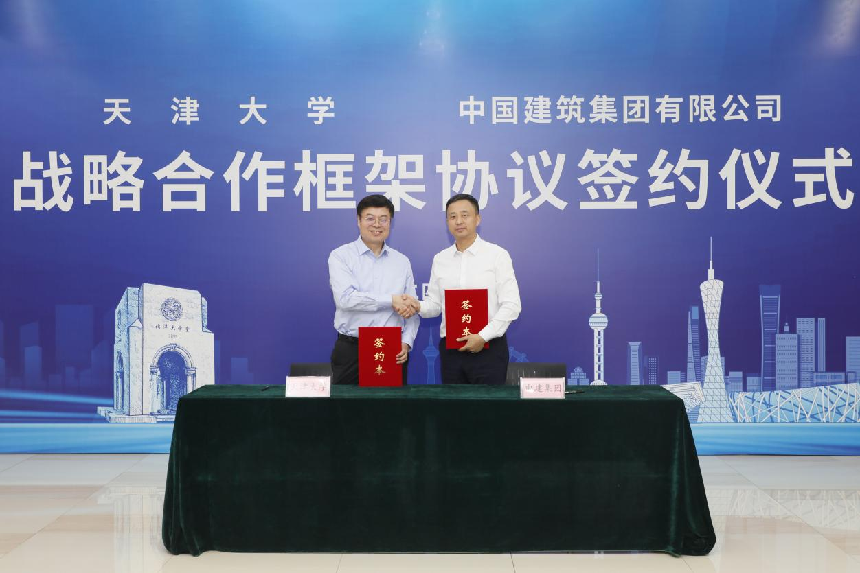 本站讯 6月18日,天津大学与中国建筑集团有限公司战略合作框架协议签约仪式在天津大学卫津路校区科学图书馆一层报告厅举行。中国工程院院士、天津大学校长金东寒与中国建筑集团有限公司党组副书记、总经理文兵代表双方签署战略合作框架协议。活动由天津大学副校长郑刚主持,校长助理、后勤保障与基本建设部部长刘秀国参加。