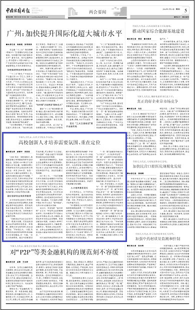 “2009年的一项数据显示,美国麻省理工学院教授和学生创办的企业,创造的GDP相当于当年韩国GDP的总量,依靠麻省理工学院研发技术在全球创办和支持的企业一共有25800家,加到一起的GDP总量在全球排第11位,高校的创新创业潜力不可估量。”全国人大代表、天津大学校长李家俊在日前接受中国经济时报记者专访时特别举例说明了高校创新创业成果并非可以立竿见影,但从长远来看,其潜力是巨大的,而高校创新型人才的培养更是关键。