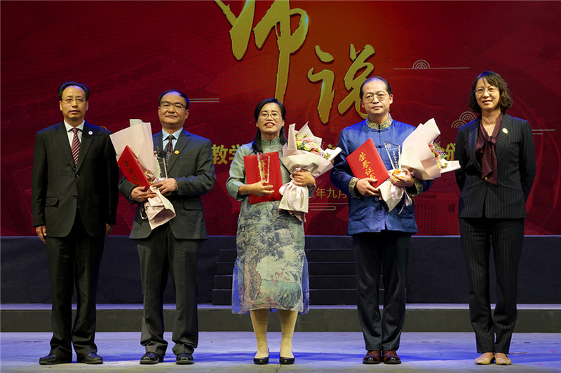 天津大学本科教学指导委员会副主任、国家级教学名师代表、材料学院赵乃勤教授和天津大学副校长王树新教授一同为张玉琴、刘俊吉、马知遥三位老师颁奖