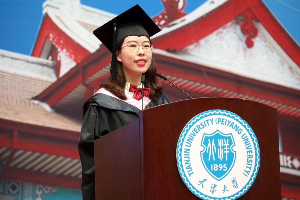 同学们,今天过后,我们将挥手告别青春的热血澎湃,去接受更为艰辛的历练。远行的游子,定将怀念郑东图书馆里的朗朗书声,定会铭记花堤路上的旖旎海棠,即使去向五湖四海,心中都会永远珍藏最美好的四年天大时光。未来无论居庙堂之高还是处江湖之远,愿我们始终铭记“实事求是”校训,将天大品格化为我们内在的精神气质,在社会这个大舞台上,展示出与“天大人”这个光辉名字相称的风采!