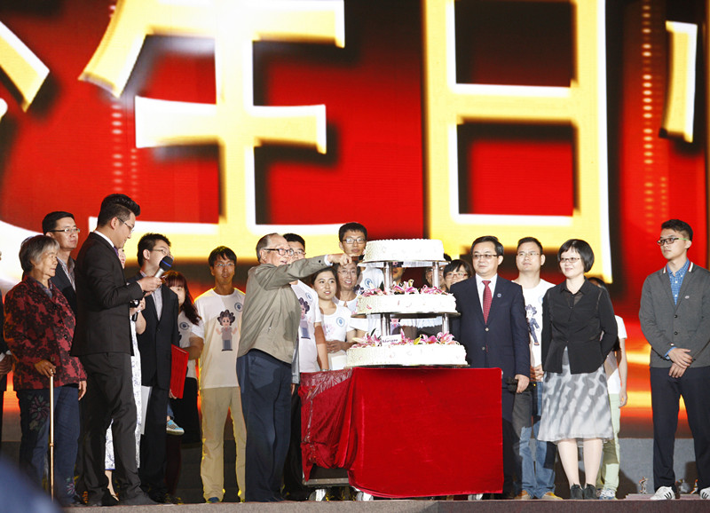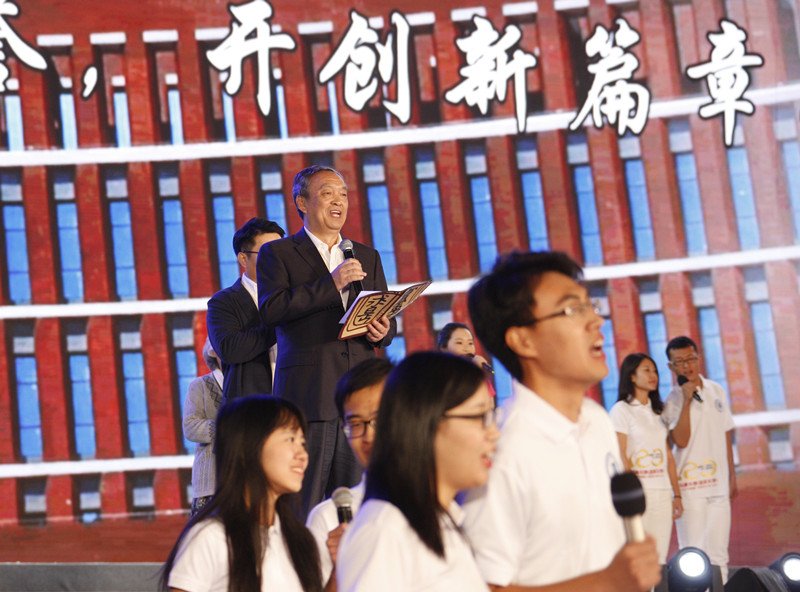 师生互动,台上台下师生校友共祝母校生日快乐