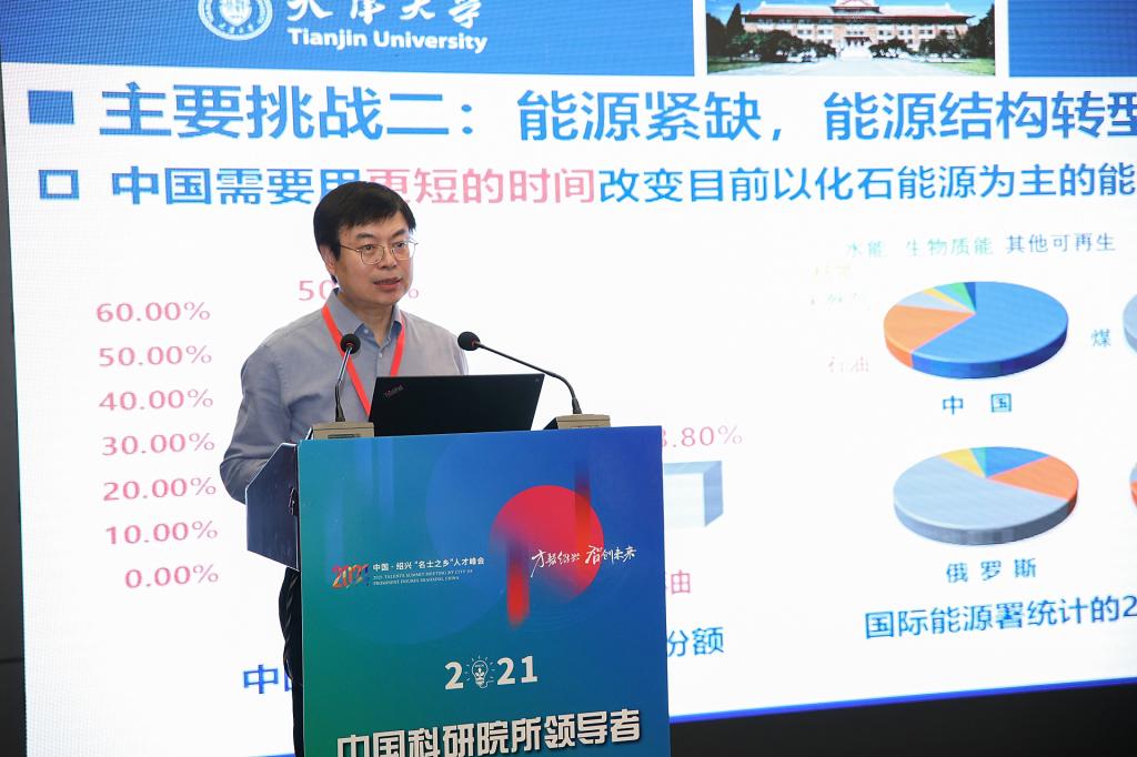 本站讯(党办校办供稿)2021年9月25日,“中国科研院所领导者跨界创新论坛——碳达峰、碳中和、碳经济平行论坛”在浙江省绍兴市召开。中国工程院院士、天津大学校长金东寒,中国科学院院士、页岩油气富集机理与有效开发国家重点实验室主任、国家页岩油研发中心主任、北京大学能源研究院院长金之钧等出席论坛并作主旨报告,中国科学院地理科学与资源研究所副所长刘卫东,国家电网有限公司体制改革办公室主任杨新法,中化集团环境控股有限公司党委书记、董事长崔焱,清华大学公共管理学院院长助理、跨界创新研究中心主任刘辉等在论坛上发表主题演讲,绍兴市人民政府副市长胡敏在论坛上致辞。