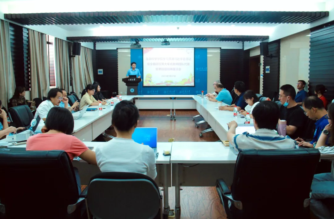 会上,与会人员集体学习了9月8日习近平总书记给全国高校黄大年式教师团队代表的回信,观看了教育部教师工作司联合“学习强国”学习平台出品的视频《习近平与教师们在一起》。结合学习重要回信精神,与会教师再次系统学习了习近平总书记在北京师范大学师生代表座谈会、在北京市八一学校考察时、在全国高校思想政治工作会议、在北京大学师生座谈会、在全国教育大会、在看望参加政协会议的医药卫生界教育界委员时、在清华大学考察时的重要讲话精神以及对黄大年同志先进事迹作出的重要指示精神,进一步加深了对“四有好老师”“ 四个引路人”“ 四个相统一”“大先生”的理解。总书记的回信令与会教师深感使命光荣、重任在肩,纷纷表示要深刻学习领会贯彻回信精神,潜心立德树人,提升育人本领,以赤诚之心、奉献之心、仁爱之心投身教育事业,培养德智体美劳全面发展的社会主义建设者和接班人。
