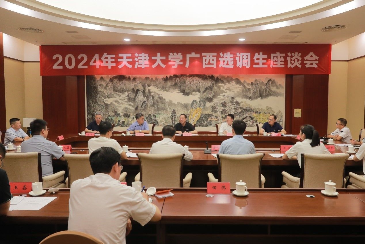 杨贤金代表天津大学向自治区党委、政府长期以来给予学校事业发展的关心支持,向为广大优秀学子提供的定向选调和引进的宝贵机会表示感谢。他表示,广西区位优势独特、资源禀赋突出、发展态势良好,是吸引人才、干事创业、成就梦想的热土,学校将深入贯彻落实习近平总书记在全国教育大会上的重要讲话精神,紧密结合广西经济社会发展实际需求,一如既往地发挥好学校学科人才优势,依托“中国—东盟工科大学联盟”等平台,进一步深化拓展校地合作,为广西经济社会高质量发展作出新的贡献。