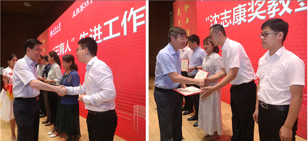 在颁奖典礼环节,张凤宝宣读了表彰决定,授予杨玉虎等11位同志天津大学“教书育人、管理育人、服务育人”先进工作者标兵的荣誉称号;授予郭安然等59位同志天津大学“教书育人”先进工作者荣誉称号;授予张洁等22位同志天津大学“管理育人”先进工作者荣誉称号;授予翟慧莲等15位同志天津大学“服务育人”先进工作者荣誉称号;授予李孟国等5位同志天津大学“优秀思想政治理论课教师”荣誉称号;授予栾淳钰等3位同志天津大学“学生最喜爱的思想政治理论课教师”荣誉称号;授予机械学院内燃机燃烧学国家重点实验室等10个单位天津大学“师德建设先进集体标兵”荣誉称号;授予药学院仪器分析中心等14个单位天津大学“师德建设先进集体”荣誉称号;授予郝逸飞等10名教师“我心目中的十佳好导师”荣誉称号和栗大超等10名教师“我心目中的好导师”荣誉称号。此外,杨振文等60位教师荣获天津大学2019年度“沈志康奖教金”。李家俊、金东寒、元英进、赵美蓉等校领导分别为获奖代表颁奖。