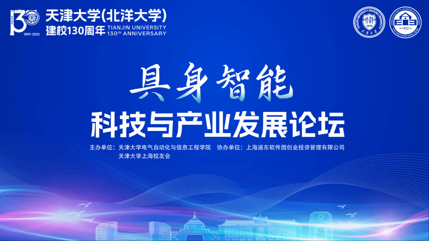 本站讯(通讯员 吴润华)适逢天津大学建校130周年之际,2025年4月26日,由天津大学电气自动化与信息工程学院与天津大学上海校友会主办,上海浦东软件园创业投资管理有限公司协办的具身智能科技与产业发展论坛在上海浦东软件园顺利举办。本次论坛围绕科技创新与产业发展深度融合主题,聚焦具身智能领域前沿动态,吸引了来自投资机构、学界、产业界近百位专家校友汇聚一堂,共同擘画未来产业蓝图。