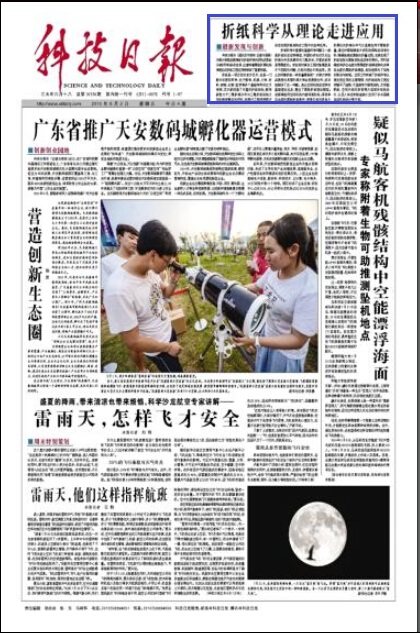 科技日报讯 (通讯员刘晓艳 记者冯国梧)天津大学陈焱教授有关折纸科学的研究成果近日被《科学》杂志发表,这意味着厚板折展机构学理论在折纸工程应用领域有了重要突破。