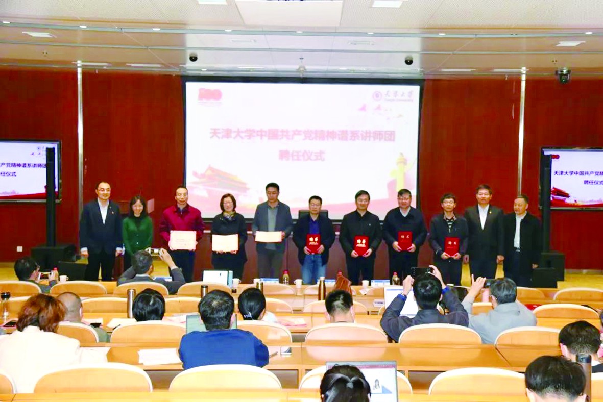 天津大学率先成立了“中国共产党精神谱系”讲师团。讲师团走出校园,面向党政机关、企事业单位、大中小学开展宣讲40余场,覆盖受众近10万人。天津大学讲师团成员、马克思主义学院院长颜晓峰教授作为党史学习教育中央宣讲团成员赴各省区市开展宣讲。第一讲,颜晓峰就提出了“从党史学‘精神谱系’,从‘精神谱系’悟党史”的学习理念。“‘党的精神谱系’是党的百年历史的一条红线,学习‘党的精神谱系’能够从红色基因层面深刻领悟中国共产党为什么能,马克思主义为什么行,中国特色社会主义为什么好。”颜晓峰说,“要将精神信念转化为开创我们这一代人历史伟业的坚实行动。”