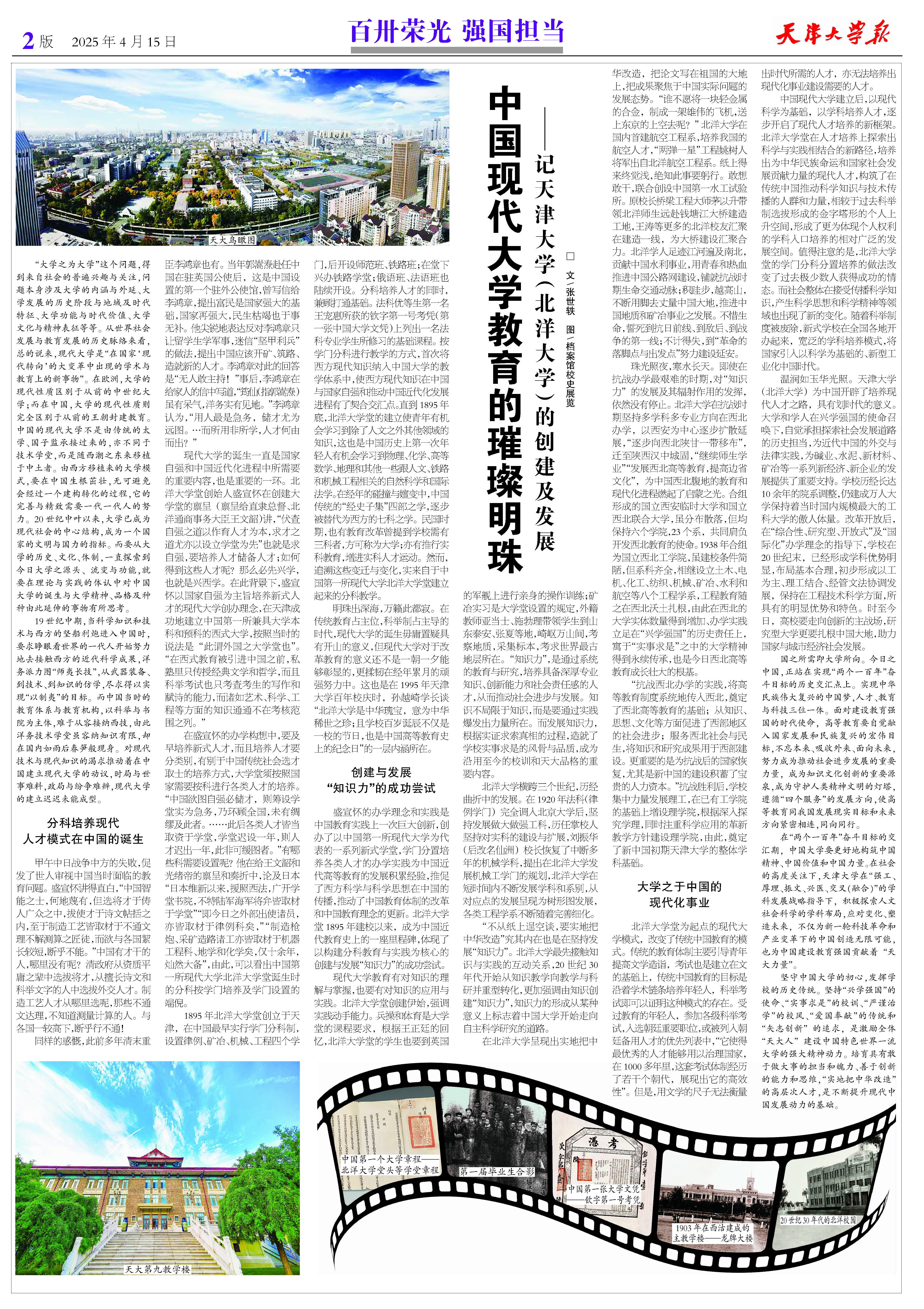 在“两个一百年”奋斗目标的交汇期,中国大学要更好地构筑中国精神、中国价值和中国力量。在社会的高度关注下,天津大学在“强工、厚理、振文、兴医、交叉(融合)”的学科发展战略指导下,积极探索人文社会科学的学科布局,应对变化、塑造未来,不仅为新一轮科技革命和产业变革下的中国创造无限可能,也为中国建设教育强国贡献着“天大力量”。