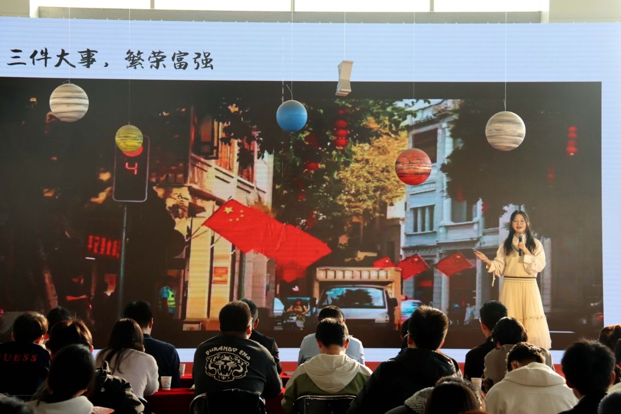 记者在活动现场看到,来自8个学院的9支学生宣讲队伍轮番登台,紧紧围绕新中国成立75周年和“一二·九”爱国学生运动89周年的时代背景,结合个人成长经历和高校学生的生活学习场景,用青年学子的视角讲述党的创新理论,传递党的好声音,为现场听众带来了一堂生动鲜活的朋辈思政课。“亲爱的前辈们,山河破碎之时,你们负重前行。如今国泰民安,我们也学着你们的样子,心怀家国,书写华章。从大山深处出来的我,永远不会忘记大山中有牵挂的人,我们返回家乡支教,为孩子们传授知识、播撒希望,将红色信仰和青年力量传递给一代又一代。”理学院宣讲员、2023级本科生张诗雨在宣讲时动情地说。张诗雨来自甘肃省民勤县,家乡地处偏僻,位于两座沙漠之间。在讲到新中国从站起来到富起来再到强起来的伟大飞跃时,她将国家实施脱贫攻坚和乡村振兴以来,自己所见所闻的家乡发展变化融入宣讲内容。从“土砖房”到“自建楼”,从“泥巴道”到“柏油路”、从“烧柴火”到“天然气”,张诗雨说“乡村振兴对我来说,感触最深。在我的成长经历中,处处体现着这些‘大政策’带来的‘小确幸’。我也希望自己能成为中国脊梁,像革命前辈一样,为下一代撑起一片天空,为他们打造更加美好的世界!”——《以青春逐梦,传星火璀璨》《承先生风骨,续北洋薪火》《红旗舞过,山花漫烂时》《石榴花开,籽籽同心》····参赛的学生宣讲队伍用9个精心打磨的宣讲专题,诠释了新时代青年的责任与担当。