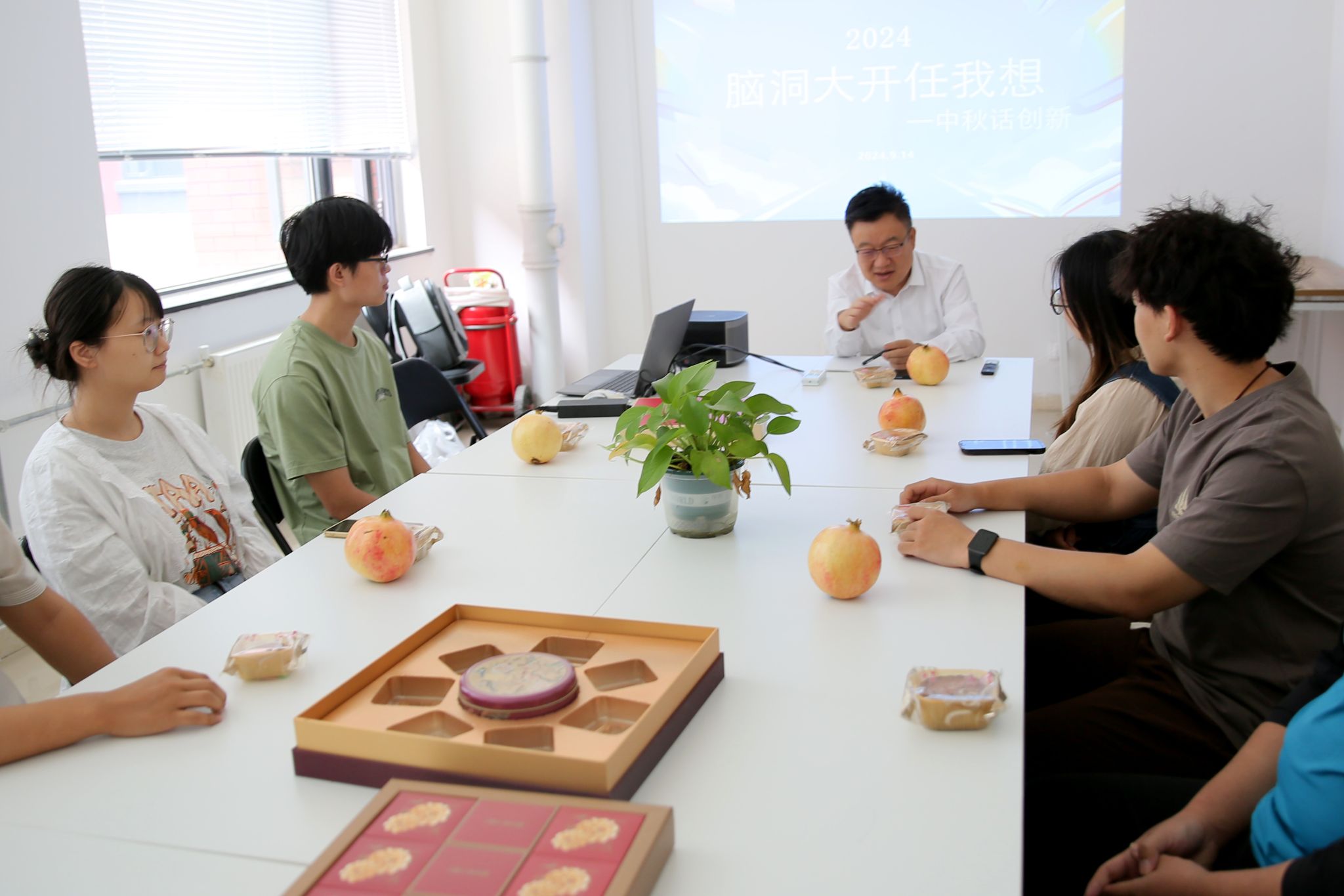 材料学院封伟教授在实验室里早早摆好了月饼水果和桌椅板凳,带领团队研究生开展了一场别开生面的中秋茶话会——“脑洞大开任我想”。封伟带领大家学习了全国教育大会上习近平总书记的重要讲话精神——以科技发展、国家战略需求为牵引,着眼提高创新能力。他从科学的发现规律谈如何创新,引导同学们一起畅想学科领域的未来设想和技术路线,研究生们纷纷表示,今天的月饼里有很多“新味道”。