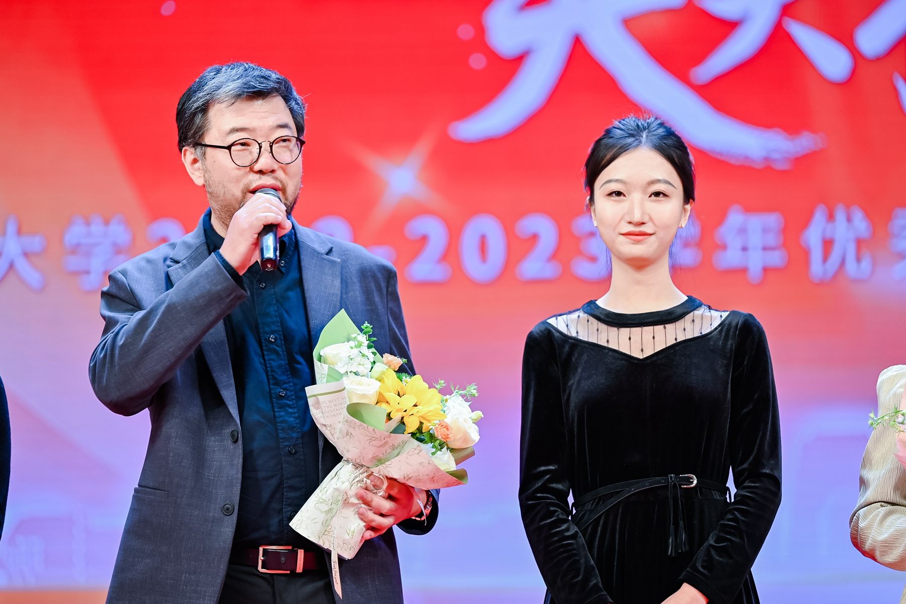 生馨蕾与导师曾鹏(左)参加天大优秀学生表彰会