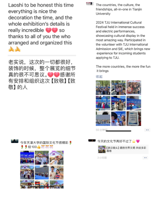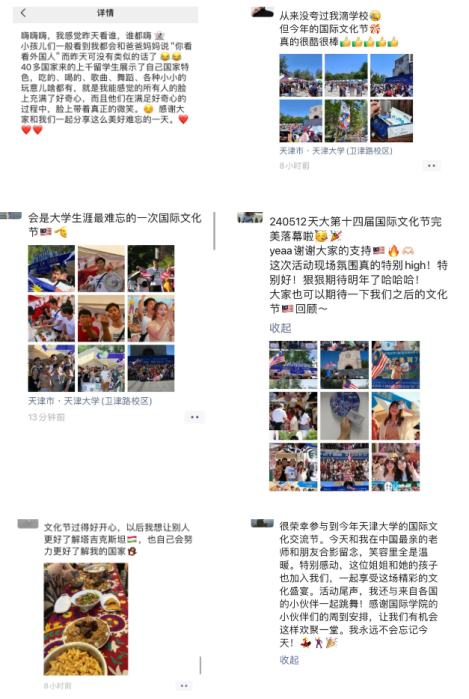 每个摊位前都挤满了好奇和热情的面孔,国际文化节的魅力让人忘记了时间的流逝,直到夜幕降临,大家依旧依依不舍,在社交平台上也由衷表达起了对于此次文化节的称赞以及无限感慨和回味。
