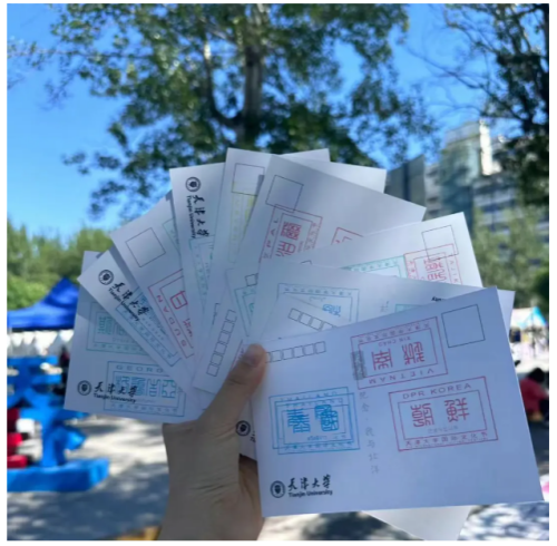 特别暖心的是,今年文化节新增设了“邮局区”,留学生可以在定制明信片上盖下“天津大学国际文化节”和“天津大学来华留学教育70周年”专属印章,写下对海外亲朋的祝福,将包含“天大情谊”的明信片寄给大洋彼岸的家人朋友。同时,大家也都手持“天津大学来华留学70周年”限定护照,纷纷去各展屋打卡纪念。