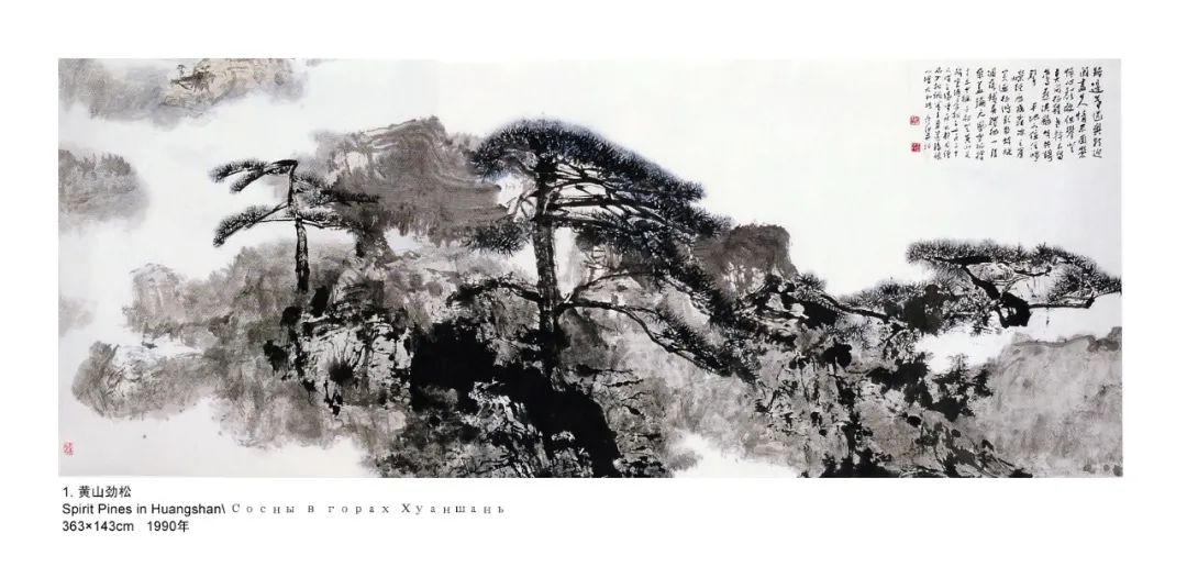 《黄山劲松》 王学仲 363x143cm 纸本水墨 1990年