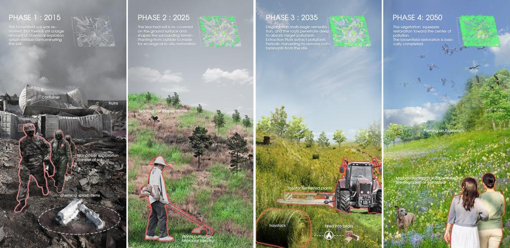 天津大学获奖团队由建筑学院大四年级的董珂和陈卓然组成。“我们的设计方案不是单纯地修复被污染的土地,更要探索如何疗愈污染地周边居民的内心创伤”,她们的指导教师、天津大学建筑学院环境设计系副主任王焱说,她还表示:“获奖离不开天津大学建筑学院浓厚的美育氛围,学生在这里能够感受美,体验美,再到自己发现美,创造美,完成‘1+1>2’的质变。”