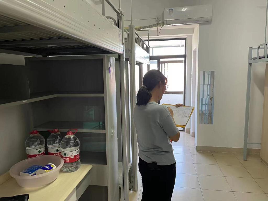 在同学们入住前,每间宿舍内的各项设施都经过专人检查,保证全部隔离宿舍水、电、空调等全部正常运转。床垫都已铺好,个人被褥也已经由专人送到对应宿舍。