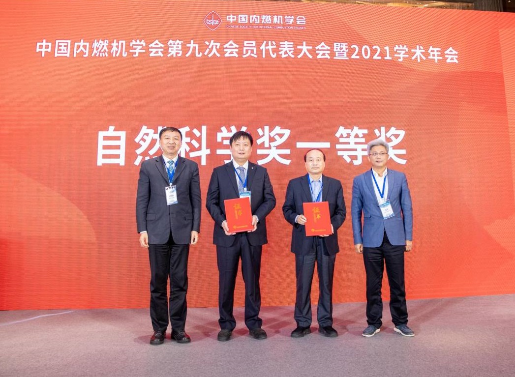 毛明、舒歌群为中国内燃机学会2021年度“自然科学奖”一等奖获奖者颁奖