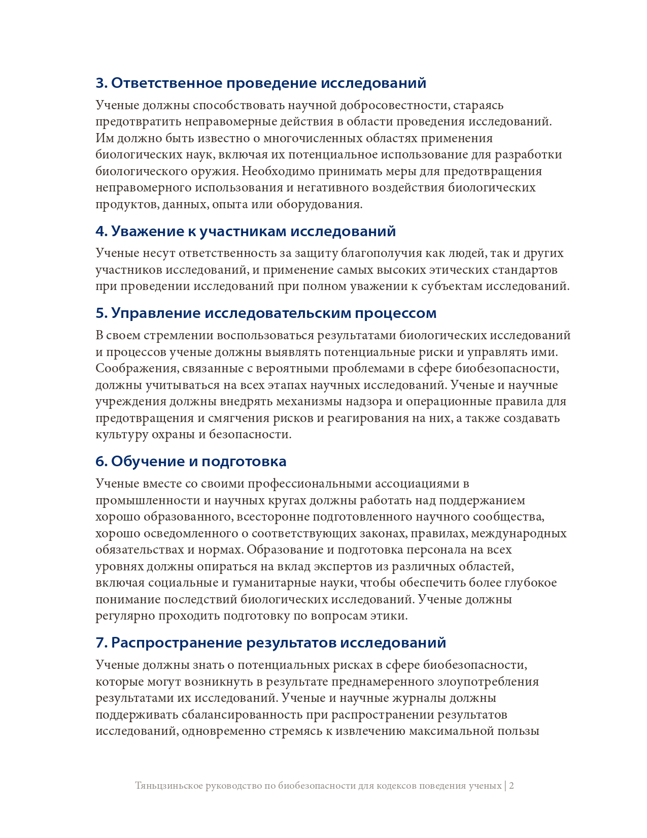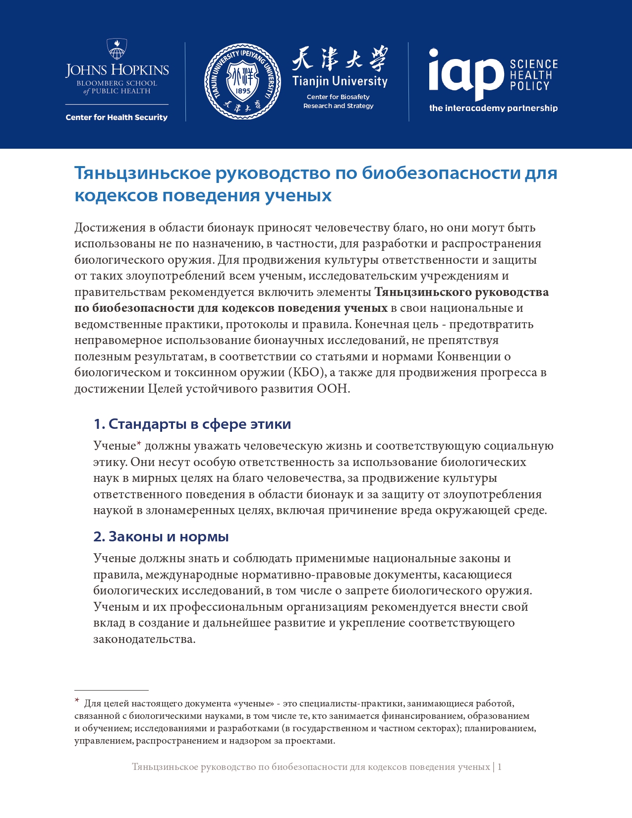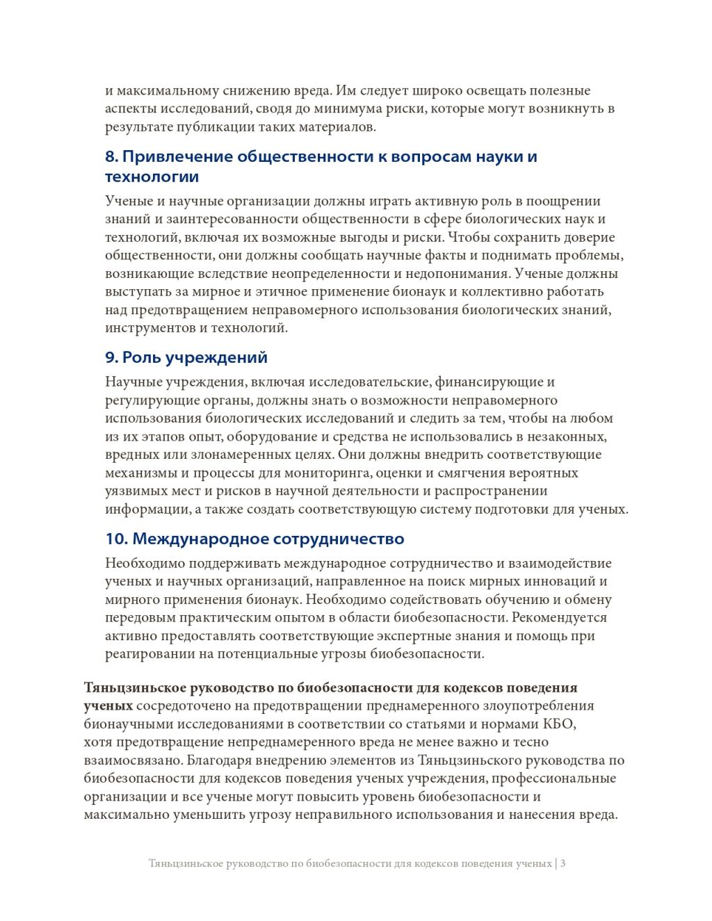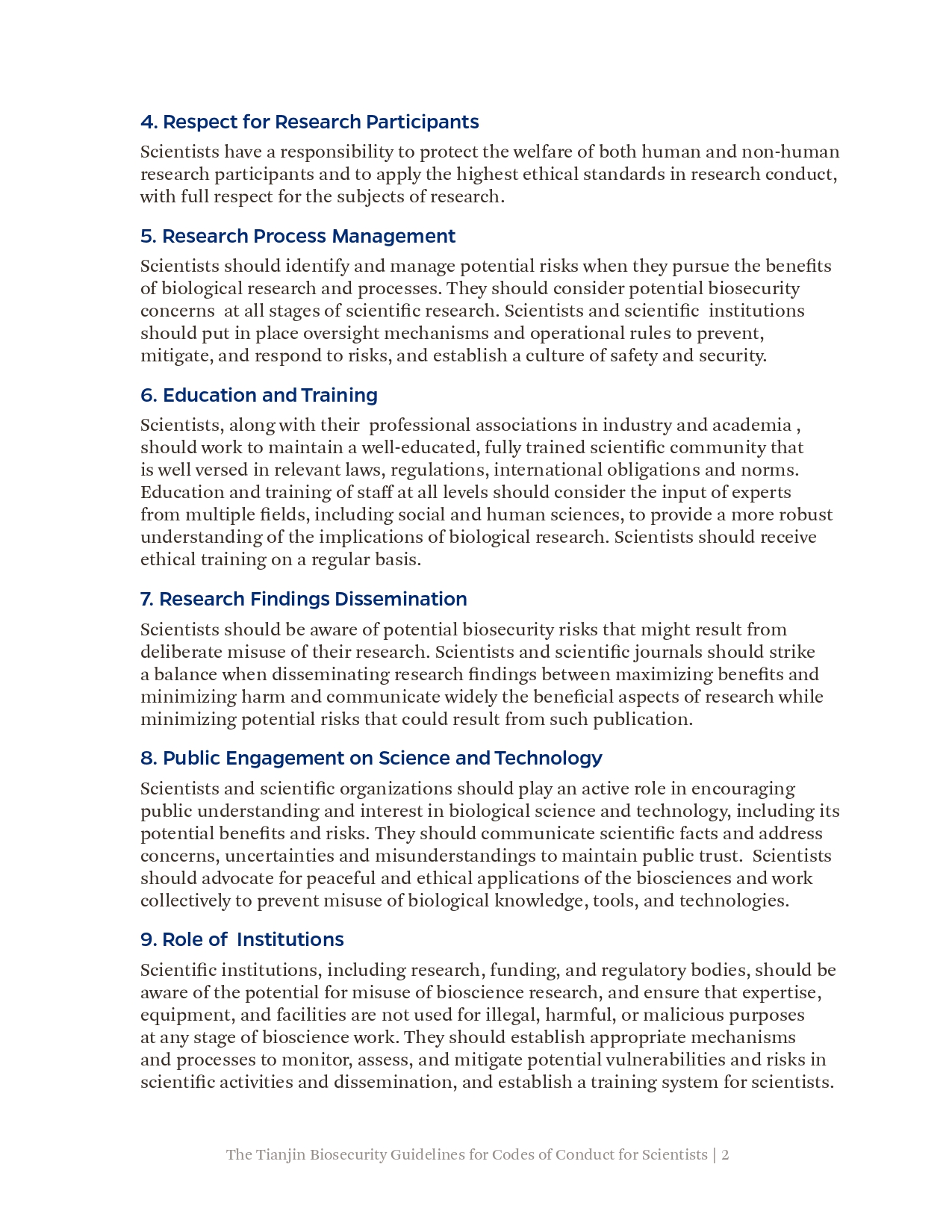 此前,《天津指南》已被国际科学院组织正式核可,并由中国和巴基斯坦共同提交《禁止生物武器公约》生物科技审议专题会议,被多国认可。生物科学领域的进步增进了人类福祉,但亦可能被滥用,特别是被用于发展和扩散生物武器。为弘扬负责任的文化,预防上述滥用,国际科学院组织鼓励所有科学家、研究机构和政府部门将《天津指南》的要素纳入其国家和机构的实践、程序和规章中。最终的目标是在不妨碍有益的生物科研成果产出的同时防止滥用,这既与《禁止生物武器公约》一脉相承,也有利于促进联合国可持续发展目标。