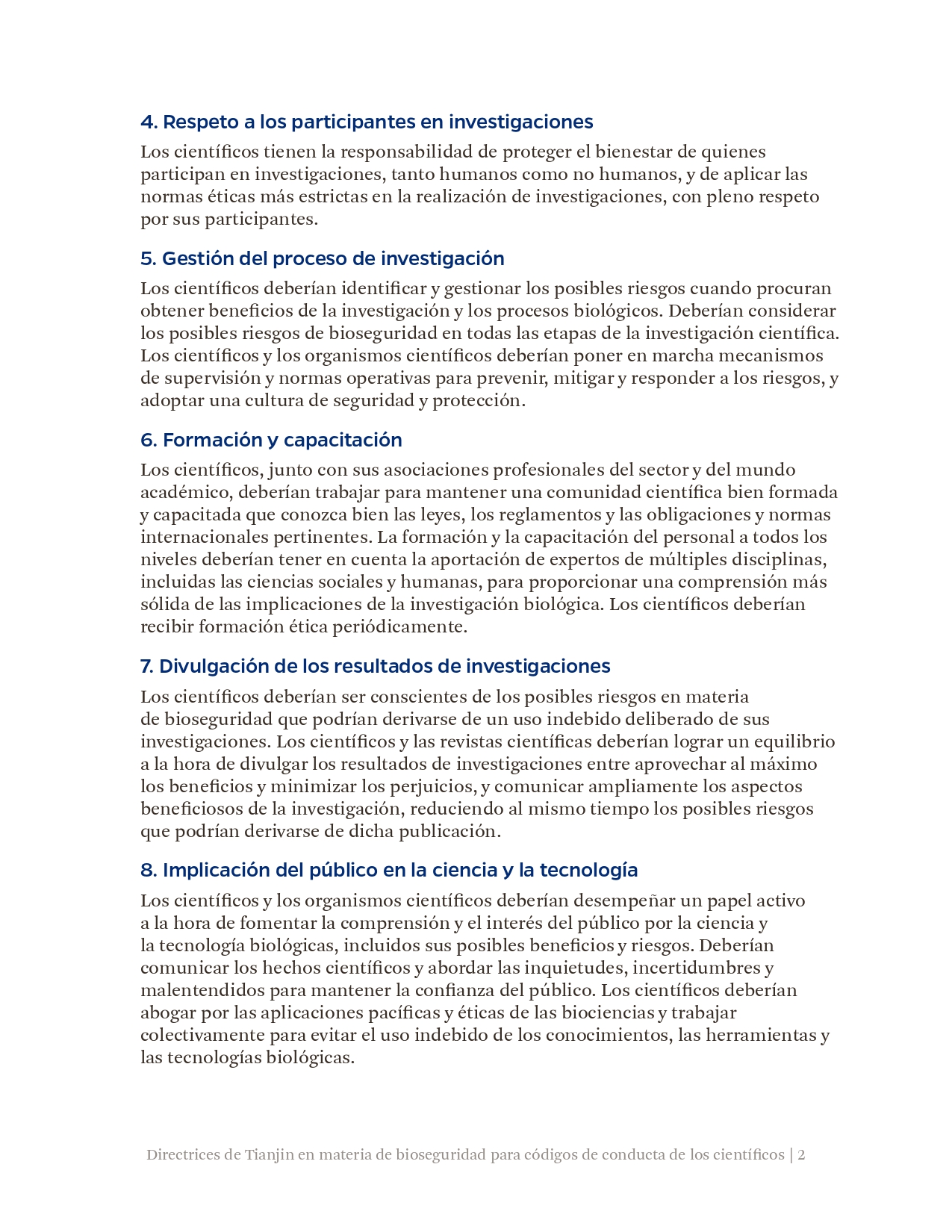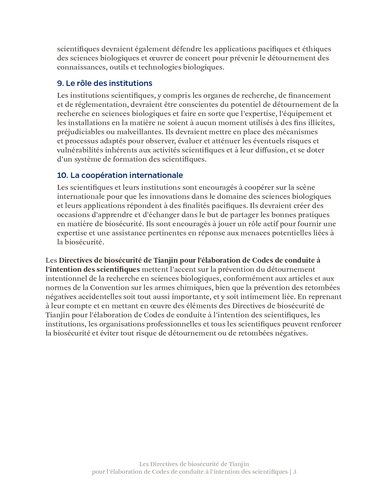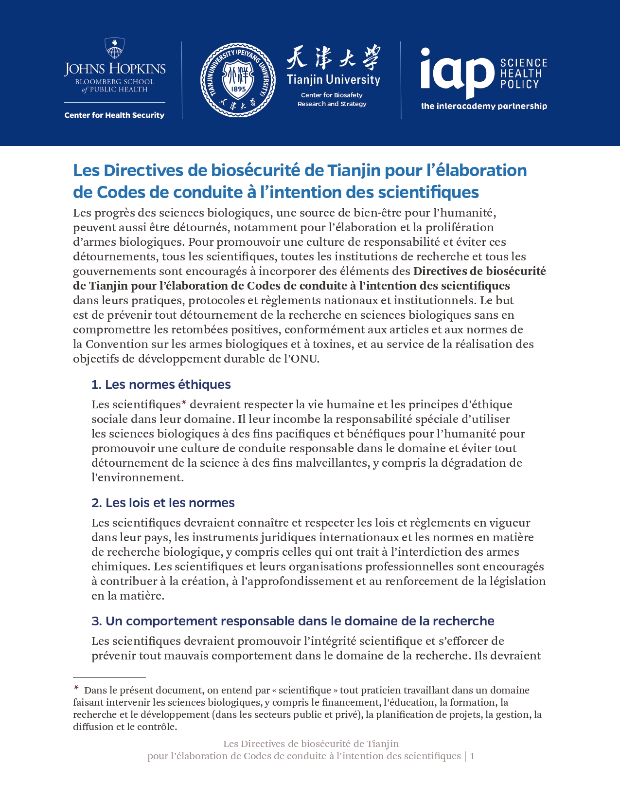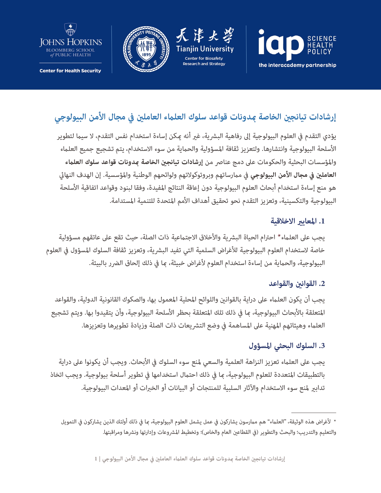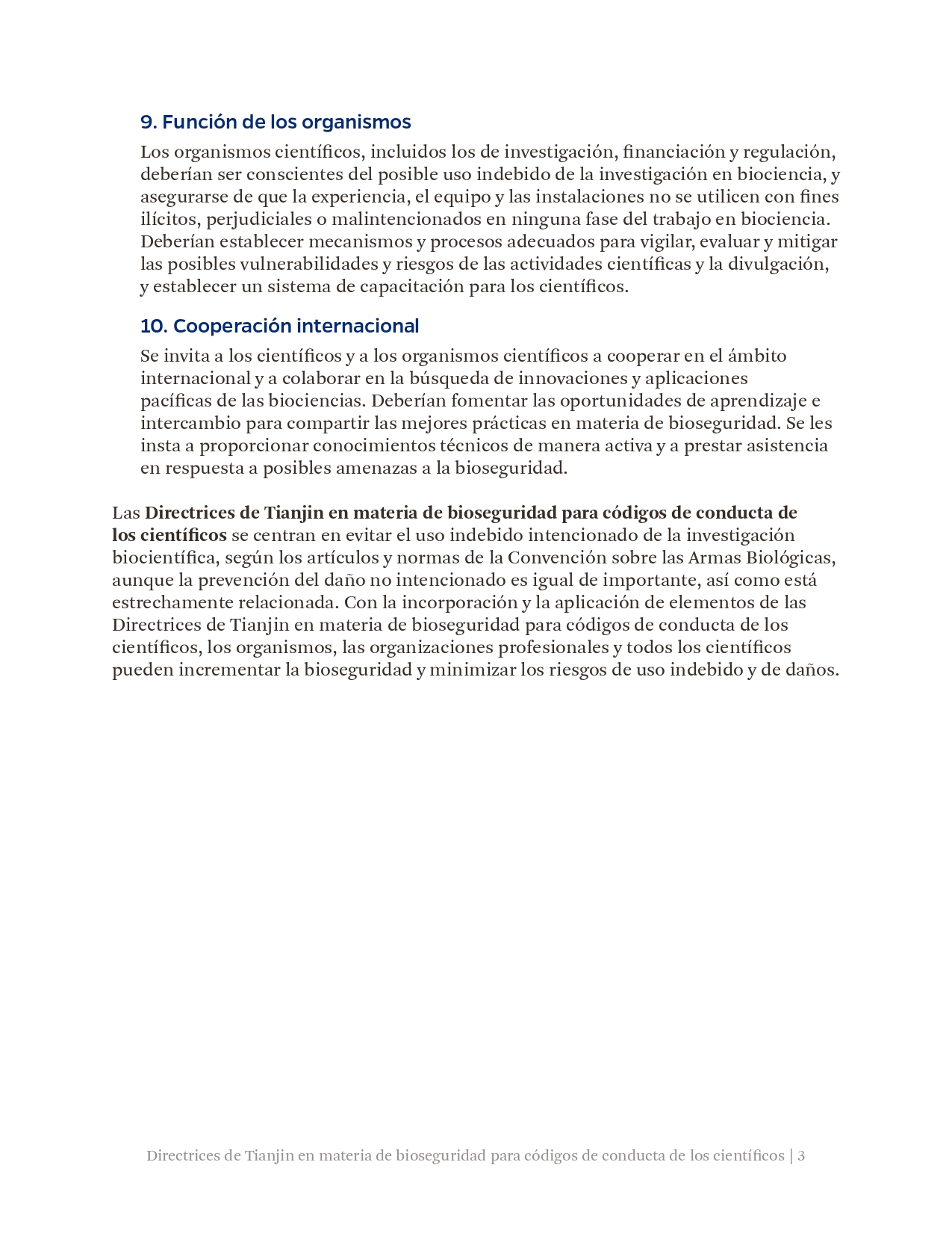 此前,《天津指南》已被国际科学院组织正式核可,并由中国和巴基斯坦共同提交《禁止生物武器公约》生物科技审议专题会议,被多国认可。生物科学领域的进步增进了人类福祉,但亦可能被滥用,特别是被用于发展和扩散生物武器。为弘扬负责任的文化,预防上述滥用,国际科学院组织鼓励所有科学家、研究机构和政府部门将《天津指南》的要素纳入其国家和机构的实践、程序和规章中。最终的目标是在不妨碍有益的生物科研成果产出的同时防止滥用,这既与《禁止生物武器公约》一脉相承,也有利于促进联合国可持续发展目标。