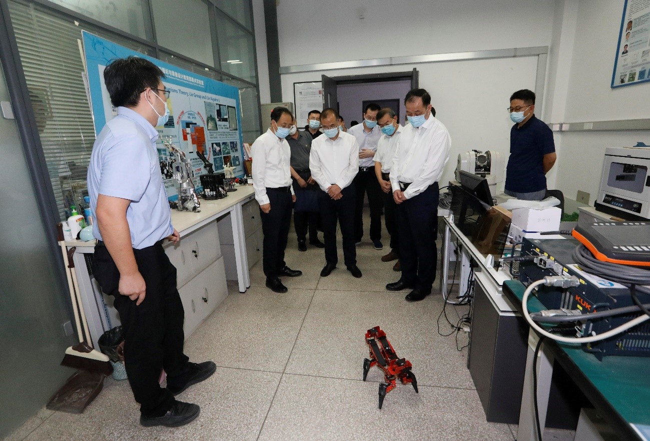 王卫东一行参观了机械工程学院机构理论与装备设计教育部重点实验室,与研发人员深入交流,详细了解其成果研发和成果产业化等方面情况。