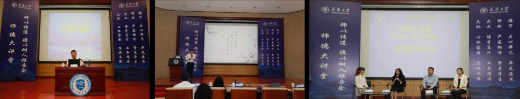 马克思主义学院院长、教育部习近平新时代中国特色社会主义思想研究中心研究员颜晓峰作《深刻领悟伟大建党精神开创民族复兴新的伟业——学习习近平总书记“七一”重要讲话精神》理论辅导报告;建筑工程学院教授张社荣作《弘扬天大师德 锤炼天大品格 铸就天大特色》师德公约宣讲报告;建筑工程学院以师生访谈的形式开展教师思政论坛,分享优秀教师的为师心得感悟。