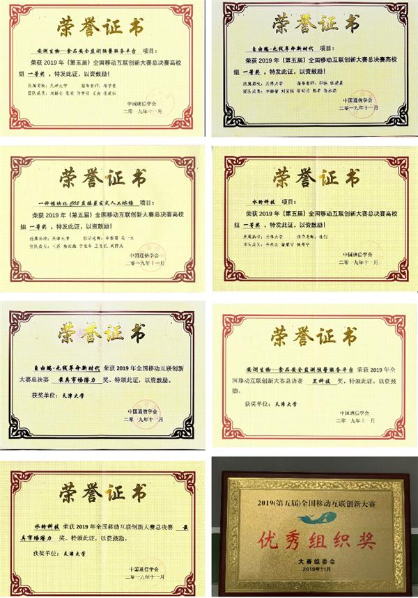 本站讯(通讯员 杨轶)11月16日至18日,2019第五届全国移动互联创新大赛(高校组)总决赛在北京落下帷幕。天津大学入围总决赛的4支代表队表现优异斩获4项一等奖。其中《水盼科技》、《自由端——无线革命新时代》荣获“最佳市场潜力奖”,《安测生物—食品安全监测预警服务平台》荣获“黑科技奖”,天津大学荣获最佳组织奖称号。