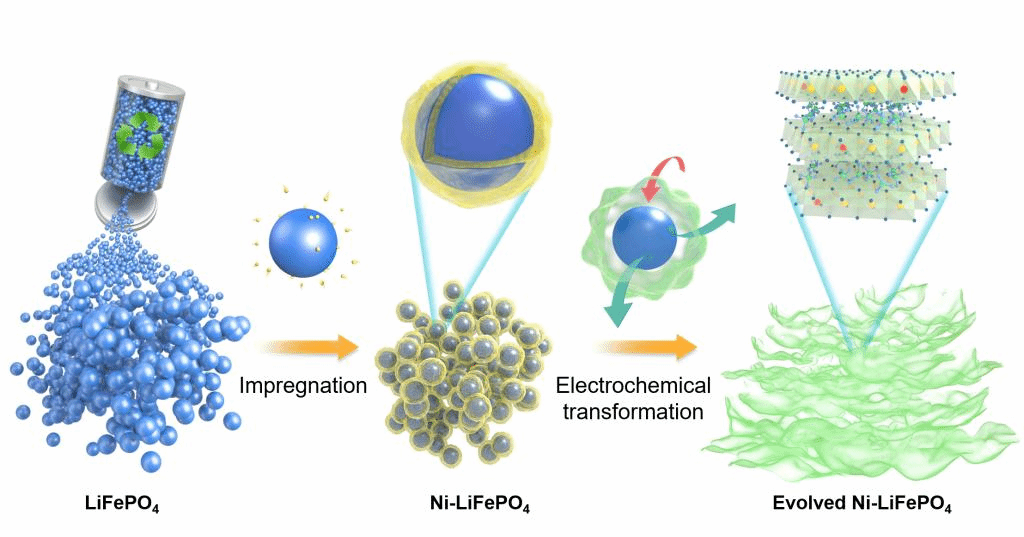 由于高能量和高功率密度,锂离子电池已成为便携式电子产品和电动汽车的主流电源。随着锂离子电池产品的普及,大量废旧电池的出现,也将对生态环境保护造成压力。近日,天津大学教授胡文彬、陈亚楠团队在《中国科学材料》发表研究论文《变废为宝:富缺陷镍掺杂磷酸铁锂用于高效电催化析氧反应》,利用简单浸渍法结合电化学原位转化,可将废旧电池正极材料磷酸铁锂转变成高效的析氧反应电催化剂。