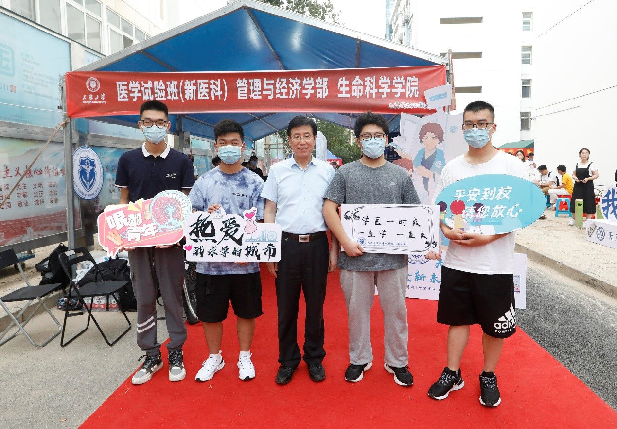 本站讯(记者 赵晖 刘延俊 摄影 唐蒙 郭程)天津大学2021级本科新生报到工作于25日,26日两天进行,党委书记李家俊,校长金东寒赴新老校区分别视察了新生报到工作进行情况。党委副书记雷鸣,党委常委、副校长巩金龙,党委常委、校长助理、统战部长张力新,学工部,后勤保障部,党办校办及相关学院和部门负责人陪同视察。