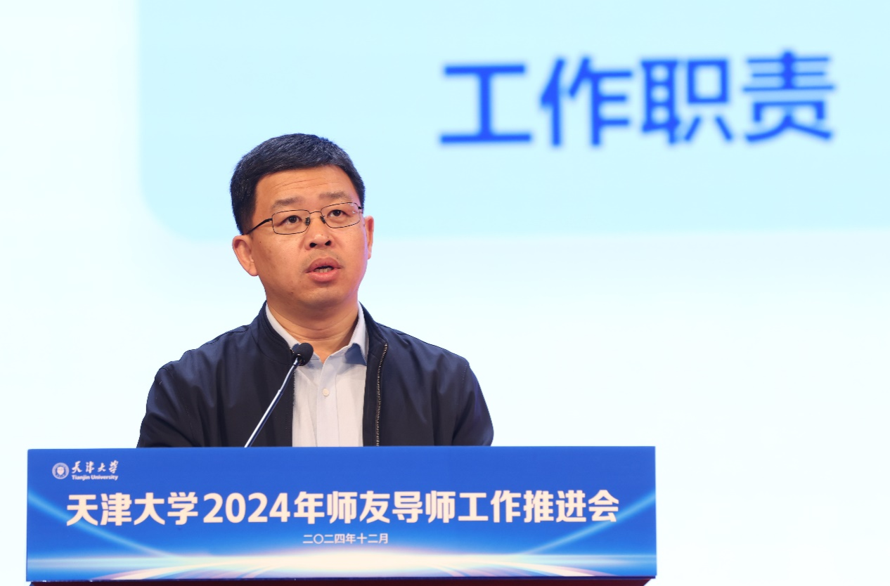本站讯(通讯员 陶森)12月27日,天津大学在北洋园校区求实会堂报告厅,召开2024年师友导师工作推进会。校党委书记杨贤金,党委常委、常务副校长胡文平,党委副书记雷鸣,党委副书记、纪委书记、国家监委驻天津大学监察专员李炜,校长助理刘秀国,党委常委、组织部部长赵金铎,总会计师、财务处处长张鹏出席会议,机关部(处)及学院全体中层干部、学院师友导师、辅导员、本科生教学管理队伍、学生代表等参加。会议由学工部部长赵欣主持。