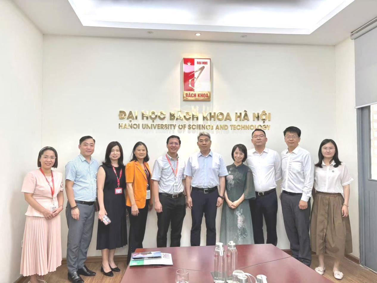 在越南河内科技大学,代表团与河内科技大学伙伴关系处副处长Chu Manh Hung、外国语学院院长 Trinh Thi Anh Hang、继续教育中心主任Thi Thuy Mai Duong等进行座谈。双方深入交流了学科匹配情况、国际化办学经验和继续教育模式,就中文教育和理工相关专业的师生交流、联合培养、科研合作、联合发表等方面合作达成共识,并计划就继续教育和终生学习项目合作开展进一步研讨,推进两校联合建设教育平台和开发高质量课程。