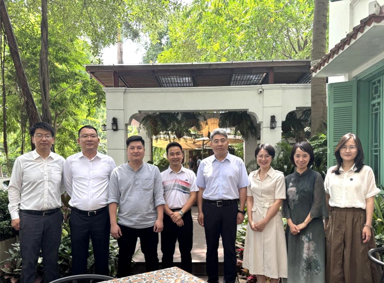 6月3日,代表团拜会中国驻越南大使馆,与文化参赞郑大伟和一等秘书王廷冠就深化中越教育合作进行交流。刘秀国介绍了天津大学与越南合作现状及发展规划,期待在使馆指导和支持下拓展对越合作,服务中越命运共同体建设。郑大伟参赞肯定了天津大学与越南长期开展文化交流和工程教育合作,并表示使馆将全力支持我校在越伙伴关系建设和教育与文化深度合作,为深化中越两国关系贡献力量。
