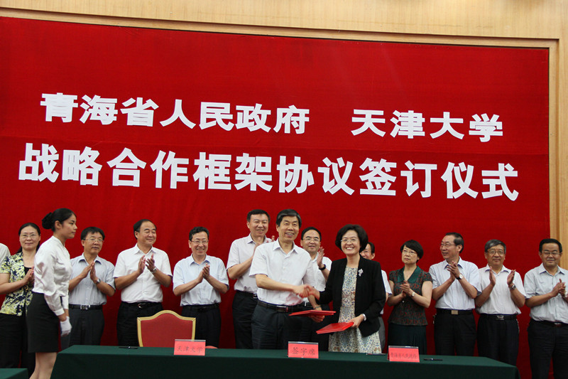 近日,天津大学与青海省人民政府战略合作框架协议签订仪式在西宁举行,天津大学党委书记刘建平与青海省副省长程丽华分别代表双方签订协议。天津大学党委常务副书记、副校长舒歌群、党委常委、组织部部长马春有以及两办、教务处、科研院、研究生院、人事处等单位的有关负责同志参加了签约仪式。