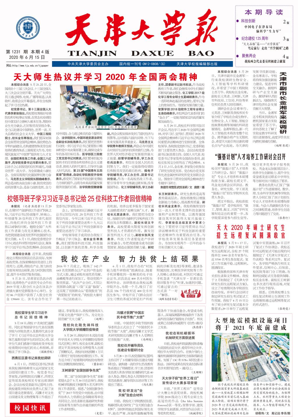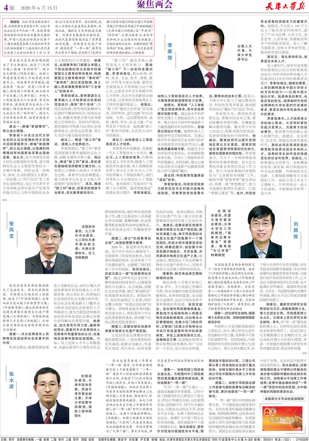2020年是决胜全面小康、决战脱贫攻坚收官之年。2020年也注定是不平凡的一年,在统筹疫情防控和经济社会发展的关键时期,中国人民政治协商会议第十三届全国委员会第三次会议和中华人民共和国第十三届全国人民代表大会第三次会议分别于5月21日和22日在北京召开。会议期间,我校4位两会代表委员认真履职,参政议政,踊跃发言并积极递交提案,为国家发展建设出谋划策。我校代表委员提案涵盖了京津冀协同发展、非物质文化遗产保护、精准扶贫、“一带一路”、教育及民生等多个领域,并受到了《光明日报》《经济日报》《科技日报》《中国教育报》《中国经济导报》《中国新闻报》《天津日报》《今晚报》及“中新网”“科学网”、天津卫视等20余家中央和地方主流媒体的采访报道,引起社会较大反响。本报特推出“聚焦两会”专版,撷取了4位代表委员的部分提案和建议,以飨读者。