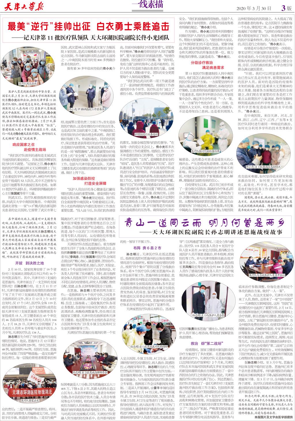 ●最美“逆行”挂帅出征 白衣勇士乘胜追击 —— 记天津第11批医疗队领队 天大环湖医院副院长佟小光团队