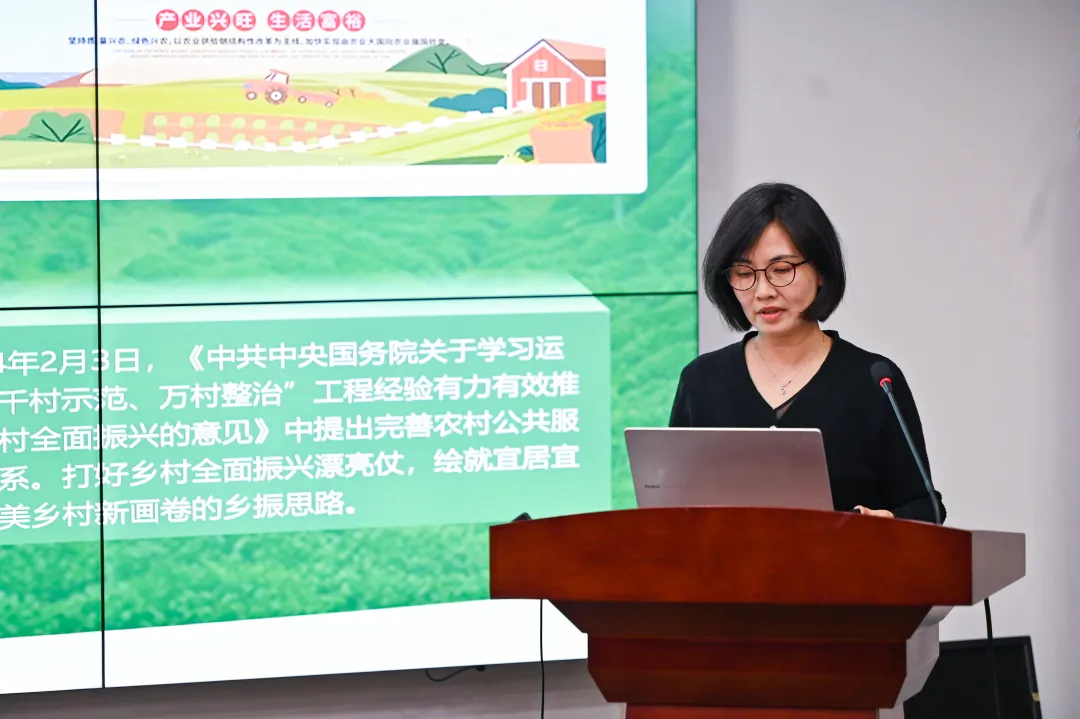 建筑学院副教授吴静子展示了“万家灯火”实践队乡村振兴暑期实践活动成果,结合政策背景介绍了面向第六埠村在党学共建、团学交流、学产学研、创客共享、美育共建、学产学研结合等方面乡村振兴学生实践的工作思路。